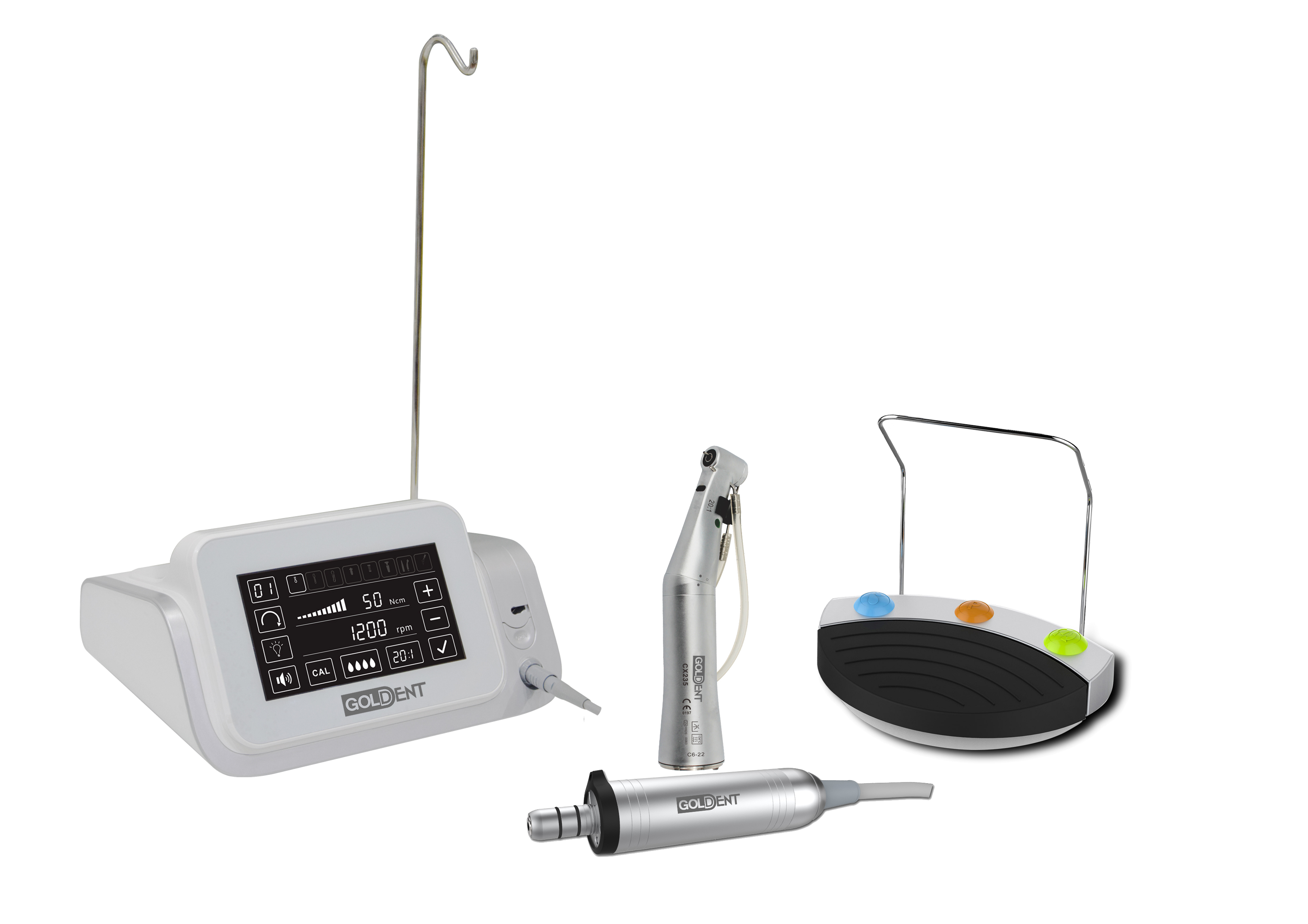 دارای LCD لمسی رنگی (5.7 اینچ) دارای موتور براش لس با سرعت و قدرت بسیار بالا سرعت گردش قابل تنظیم از 300 الی 40000 دور در دقیقه گشتاور قابل تنظیم از 5 الی 80 N/cm ایریگشن قابل تنظیم تا 150 میلی لیتر در دقیقه قابلیت کنترل اتوماتیک سرعت و گشتاور دارای کالیبراسیون اتوماتیک و 10 حافظه برنامه پدال مولتی فانکشن به همراه آنگل ایمپلنت فایبر اپتیک 20:1 موتور ساخت سوئیس