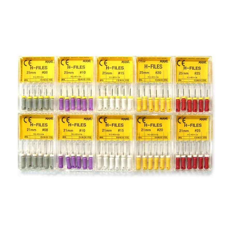 H File از پرمصرف ترین فایل دستی ها در درمان اندو و ریشه است. H فایل برنده اما شکننده می باشد زیرا مفتول آن تراش خورده است و از آنجایی که سر آن تیز و برنده است باید با دقت بیشتری از آن استفاده نمود و H فایل بدنه خاردار شکل دارد.