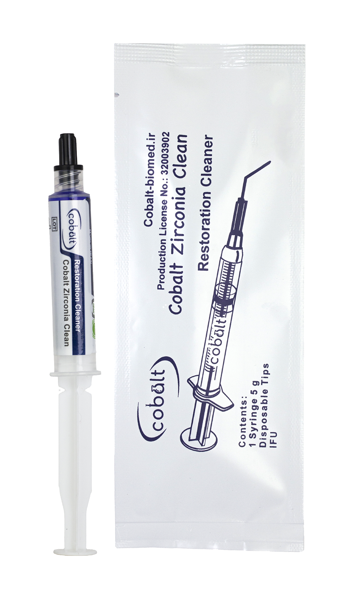 ژل Cobalt Zirconia Cleaning به عنوان تمیز کننده غیر ساینده سطح رستوریشن پس از امتحان رستوریشن در دهان بیمار استفاده می شود. این ژل با حذف آلودگی های فسفاته سطح رستوریشن که حین پروسهtry-in ایجاد شده اند، موجب حصول نتایج قابل اطمینان با کاربرد سمان های ادهزیو می شود. این ژل برای تمیز کردن سطح داخلی رستوریشن های سرامیکی، زیرکونیا و فلزی متقابل امتحان داخل دهان و آلودگی با بزاق، قابل استفاده است.
